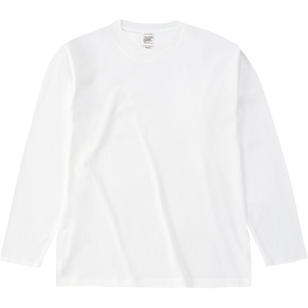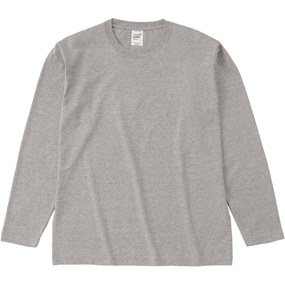 生地にコシがあり、サラッとした風合いが特徴のオープンエンド糸(空気紡績糸) を使用。衿リブも2本針縫製でしっかりしていて着込むごとに身体に馴染むこと間違いなし。厚手の素材で耐久性抜群です。こちらはオープンエンド マックスウェイト Tシャツ(OE1116)を袖口リブ無しのロングスリーブにしたものです。